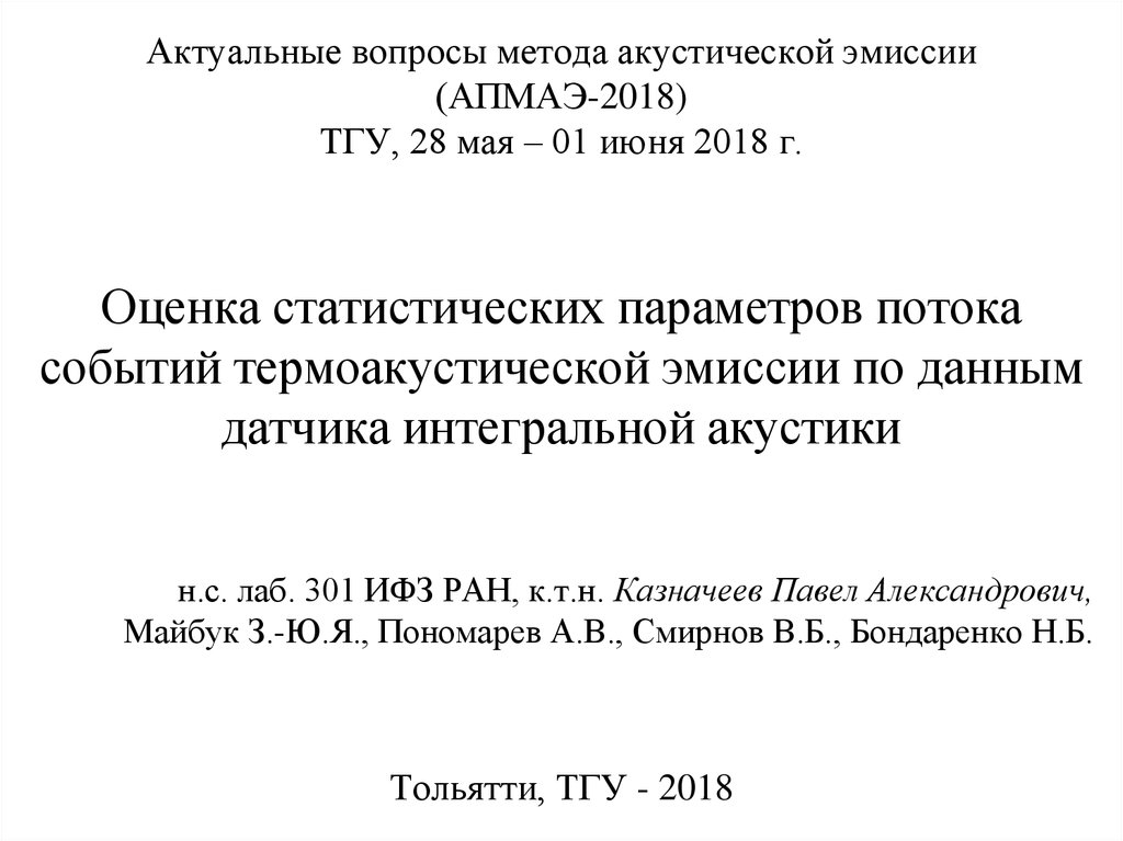 Актуальные вопросы метода акустической эмиссии(АПМАЭ-2018)