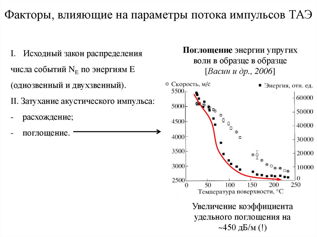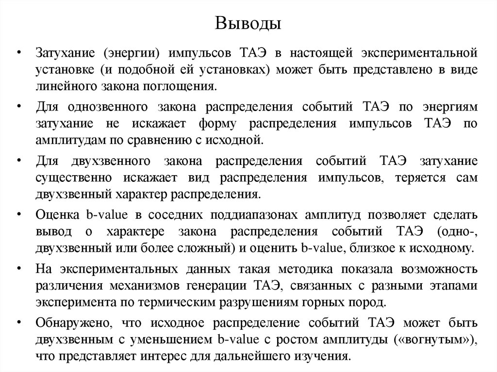 Выводы• Затухание (энергии) импульсов ТАЭ в настоящей экспериментальной