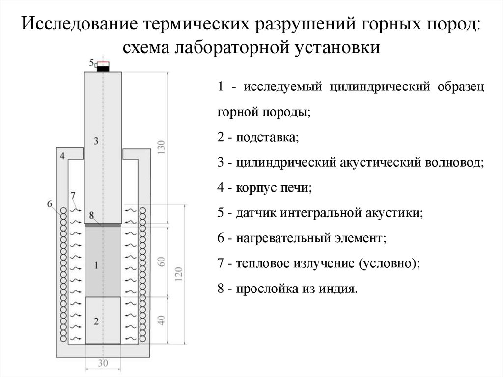 Исследование термических разрушений горных пород:схема лабораторной установки