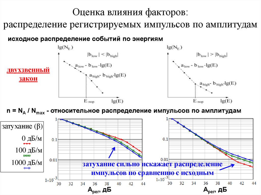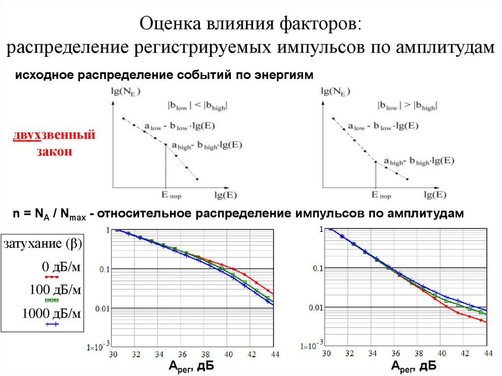 • Для двухзвенного закона распределения событий ТАЭ затухание