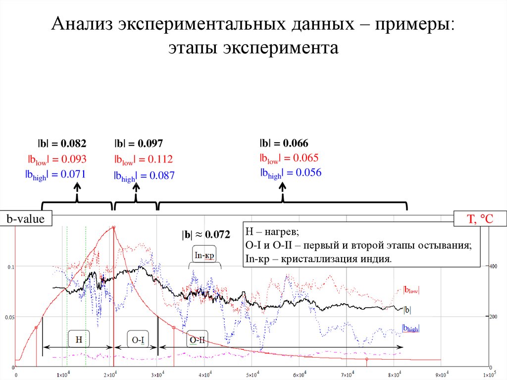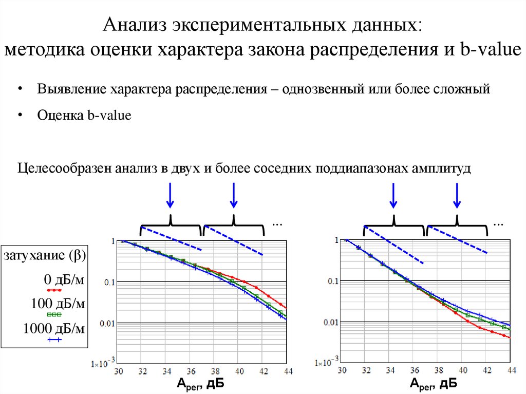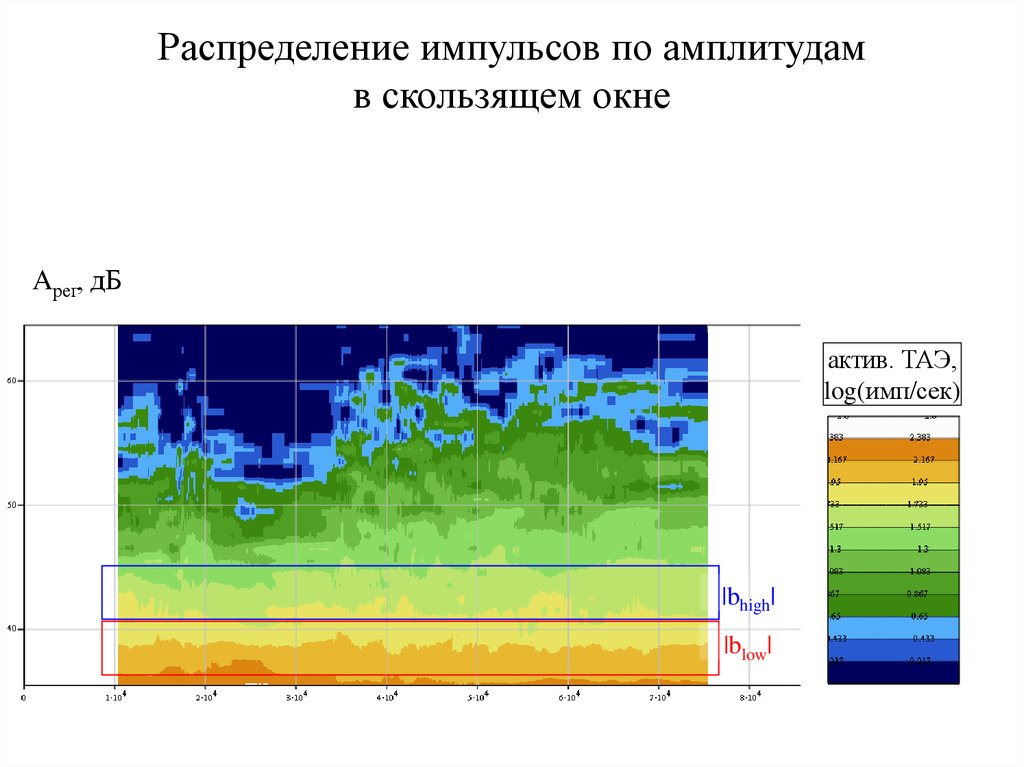 • Оценка b-value в соседних поддиапазонах амплитуд позволяет сделать