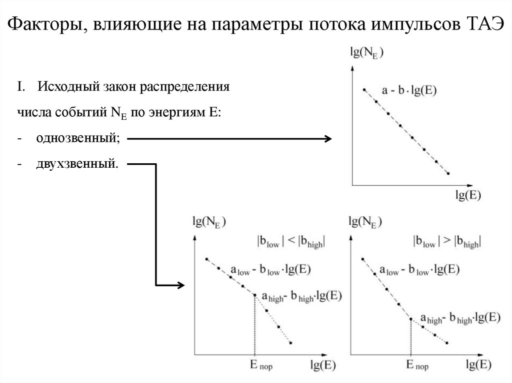 параметрам потока импульсов – распределения по энергиям, b-value и т.п.