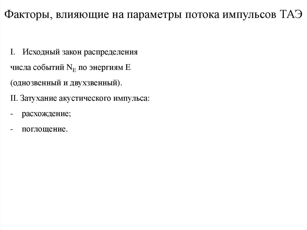 Факторы, влияющие на параметры потока импульсов ТАЭI. Исходный закон распределения