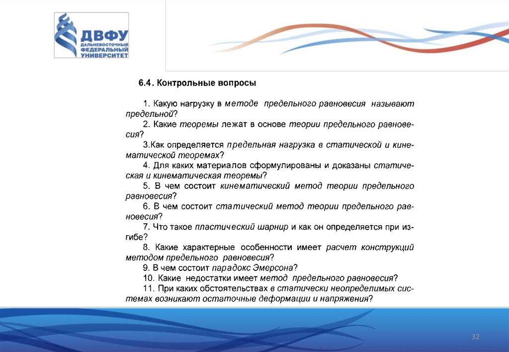 Тема 6. Расчет стержневых конструкций попредельному равновесию