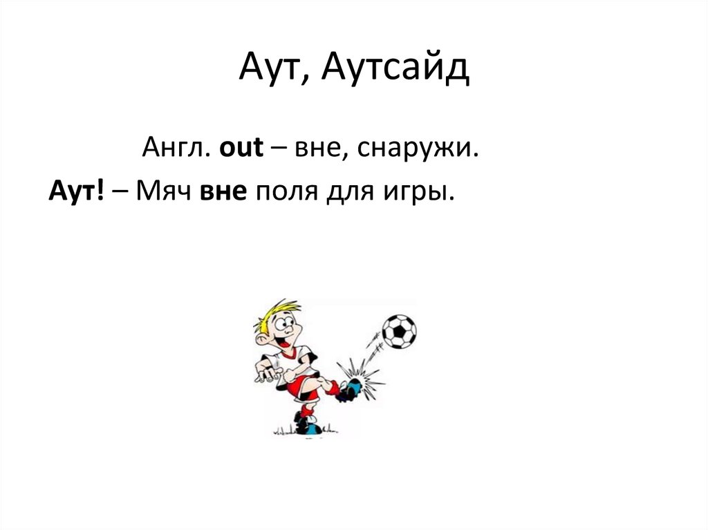 Аут, АутсайдАнгл. out – вне, снаружи.
