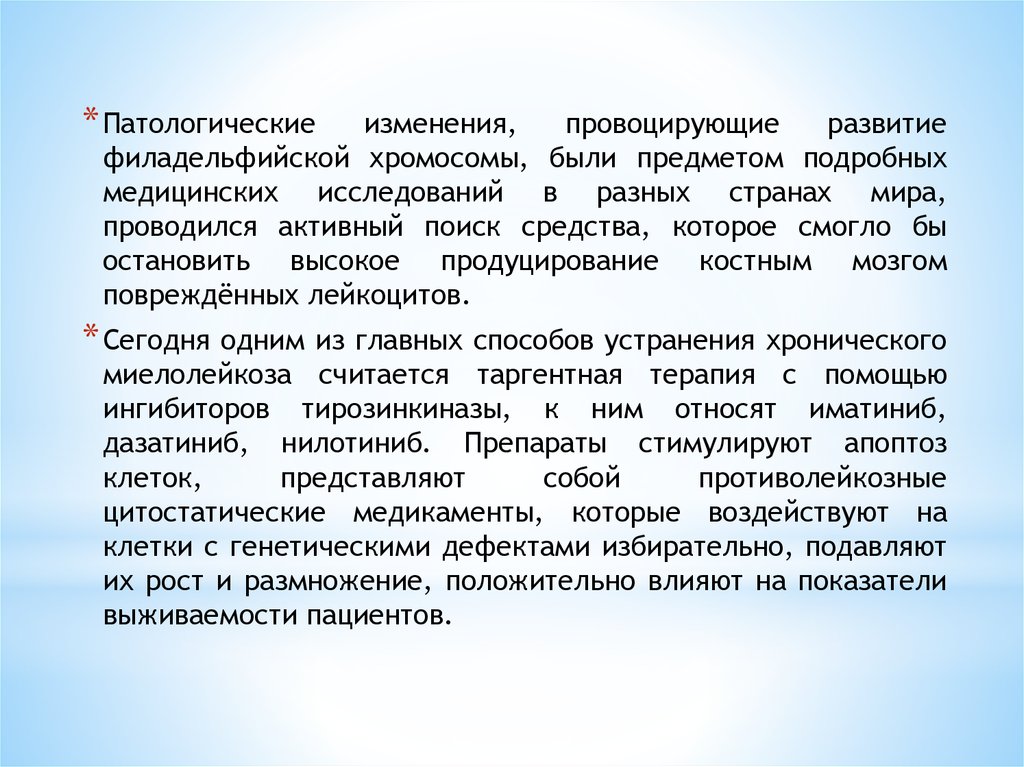 *Это хромосома, которая может выявляться вкостном мозге пациентов при хроническом