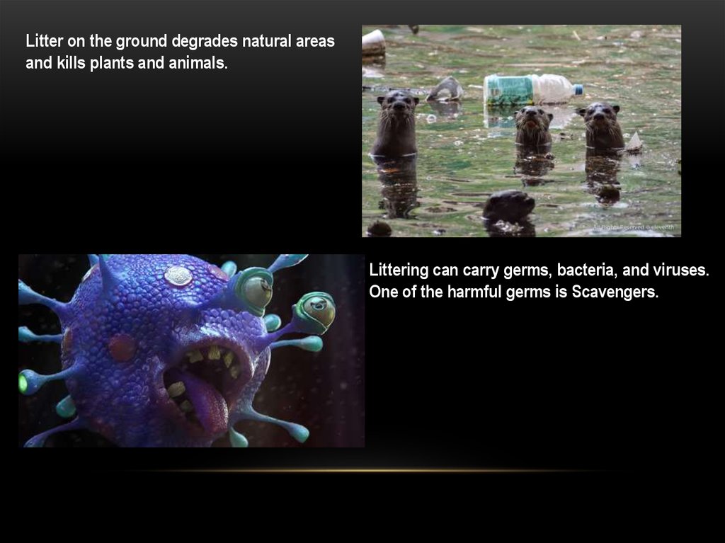 Litter on the ground degrades natural areasand kills plants and animals.