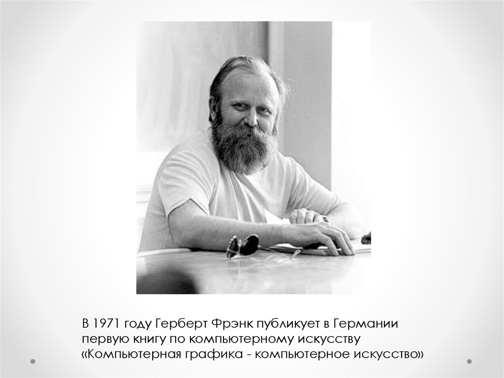 В 1971 году Герберт Фрэнк публикует в Германиипервую книгу по компьютерному искусству