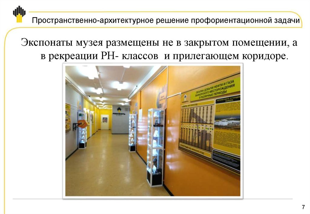 Пространственно-архитектурное решение профориентационной задачиЭкспонаты музея размещены не в закрытом помещении, а