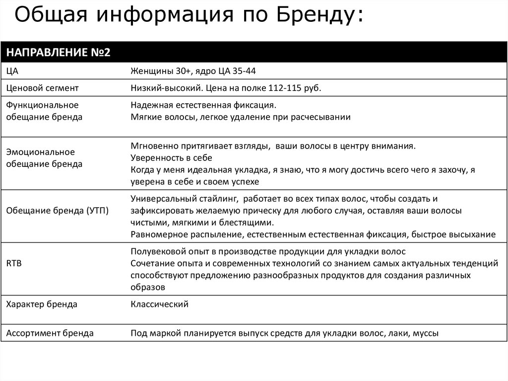 Общая информация по Бренду:НАПРАВЛЕНИЕ №2