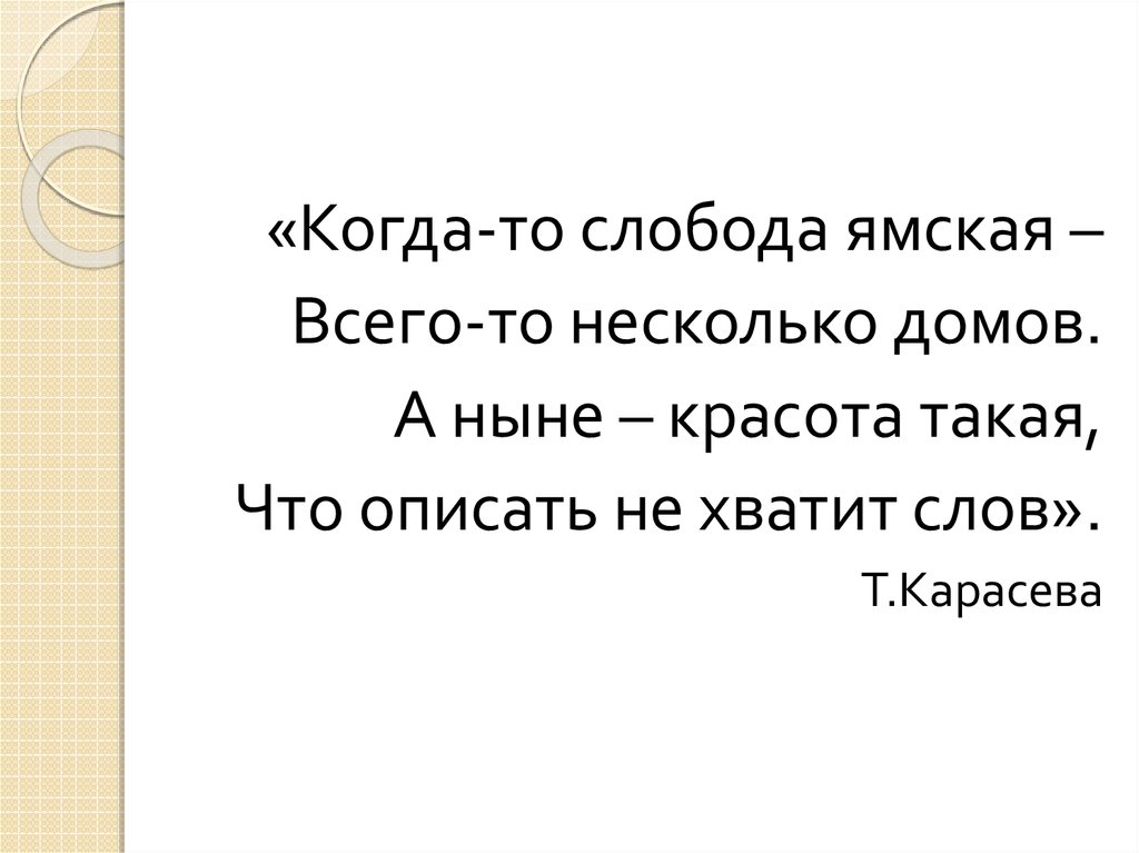 «Когда-то слобода ямская –Всего-то несколько домов.