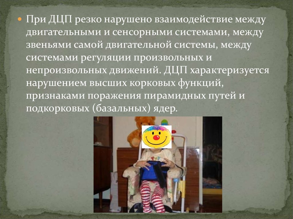 При ДЦП резко нарушено взаимодействие междудвигательными и сенсорными системами, между
