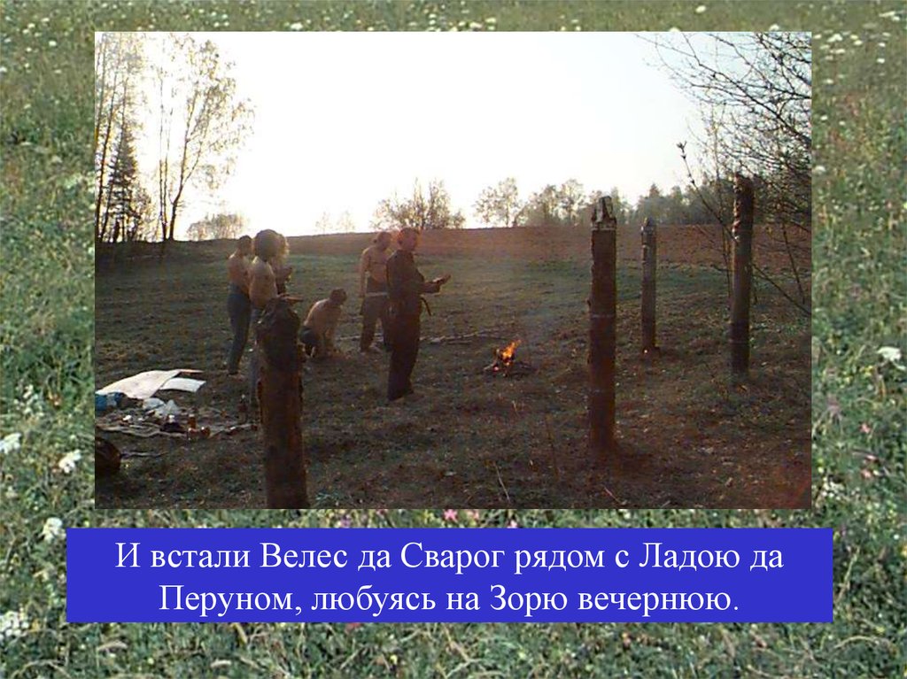 И встали Велес да Сварог рядом с Ладою даПеруном, любуясь на Зорю вечернюю.