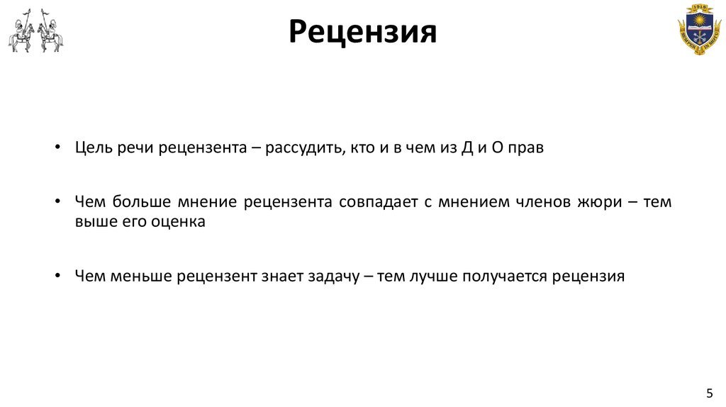 Рецензия• Цель речи рецензента – рассудить, кто и в чем из Д и О прав