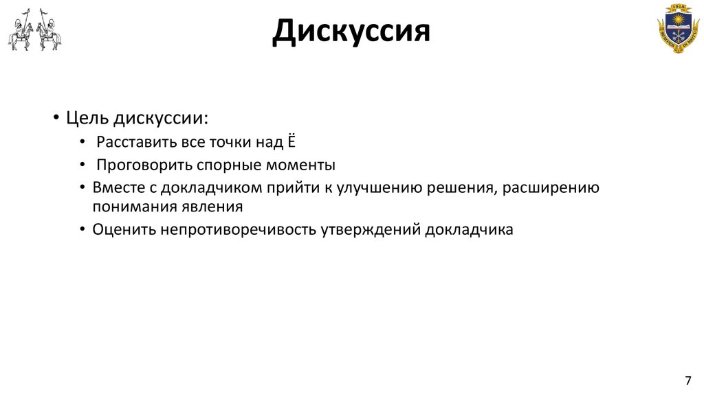 • Вместе с докладчиком прийти к улучшению решения, расширению