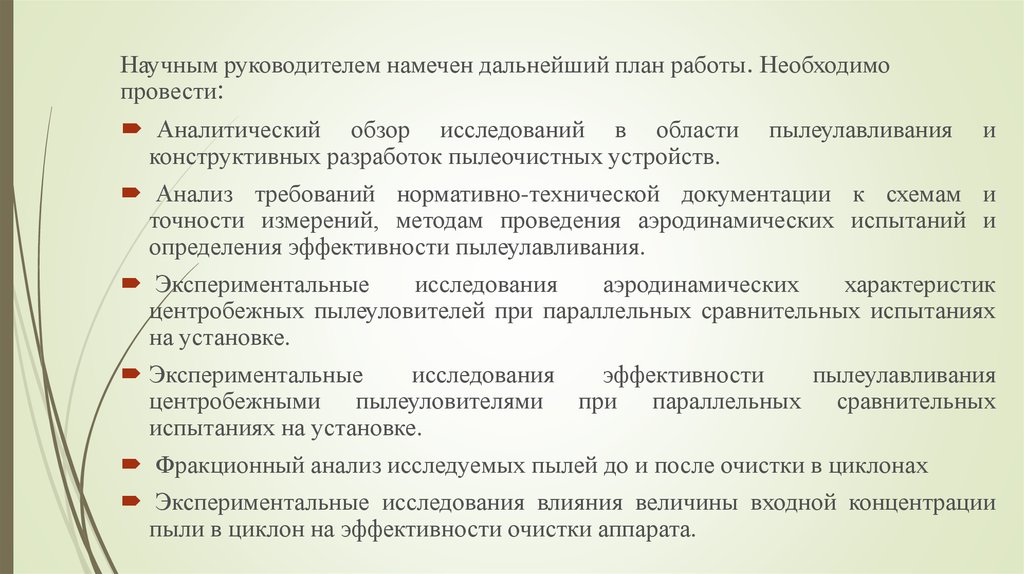 Научным руководителем намечен дальнейший план работы. Необходимопровести: