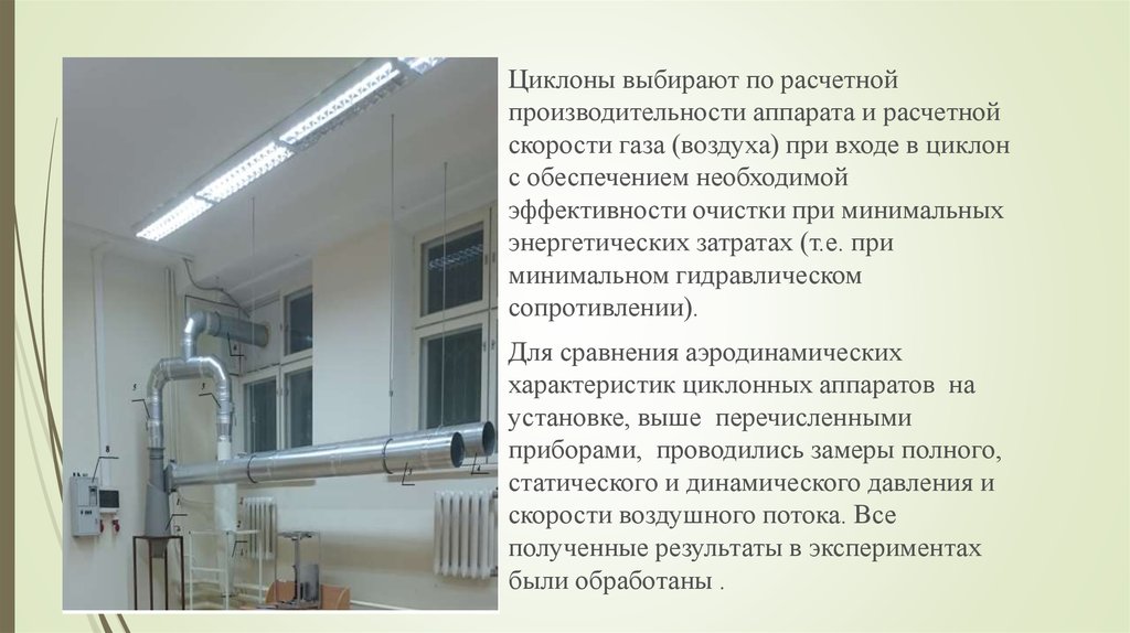 Циклоны выбирают по расчетной производительности аппарата и расчетной скорости газа (воздуха) при