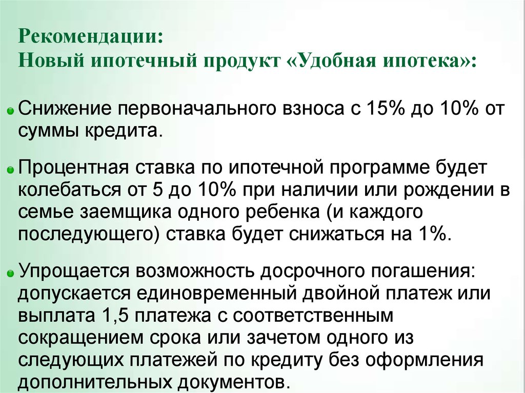 Рекомендации:Новый ипотечный продукт «Удобная ипотека»: