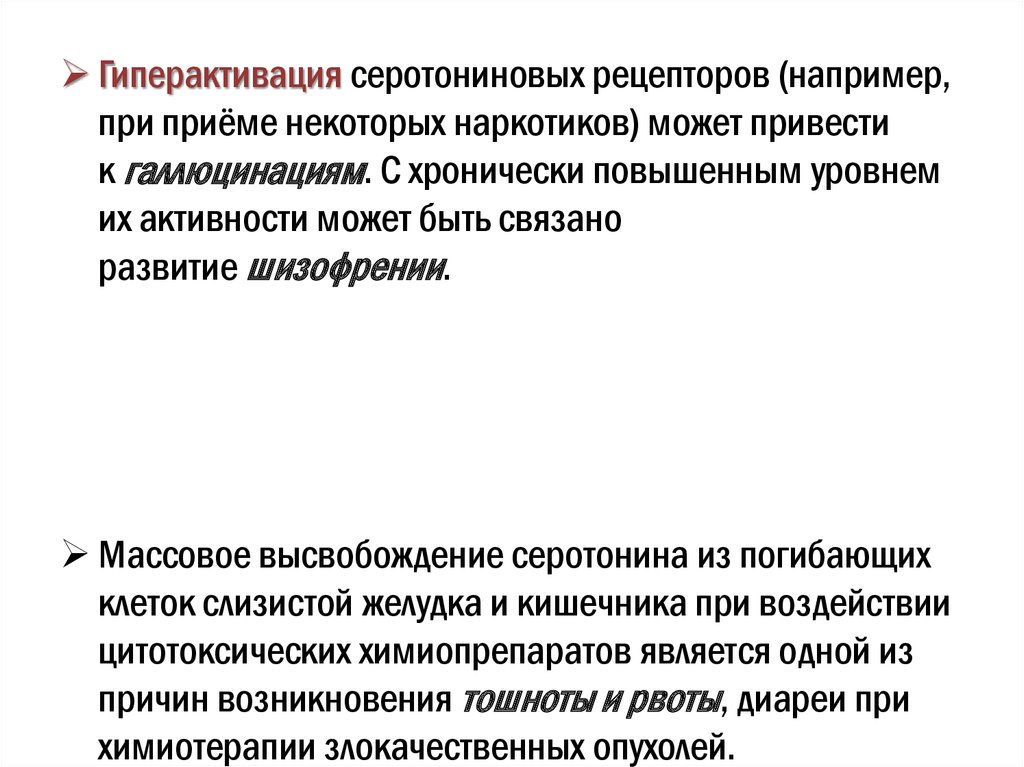 Гиперактивация серотониновых рецепторов (например,при приёме некоторых наркотиков) может привести