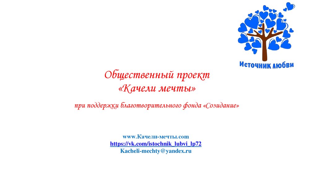 Общественный проект «Качели мечты» при поддержке благотворительного фонда «Созидание»