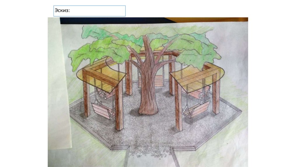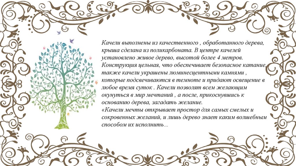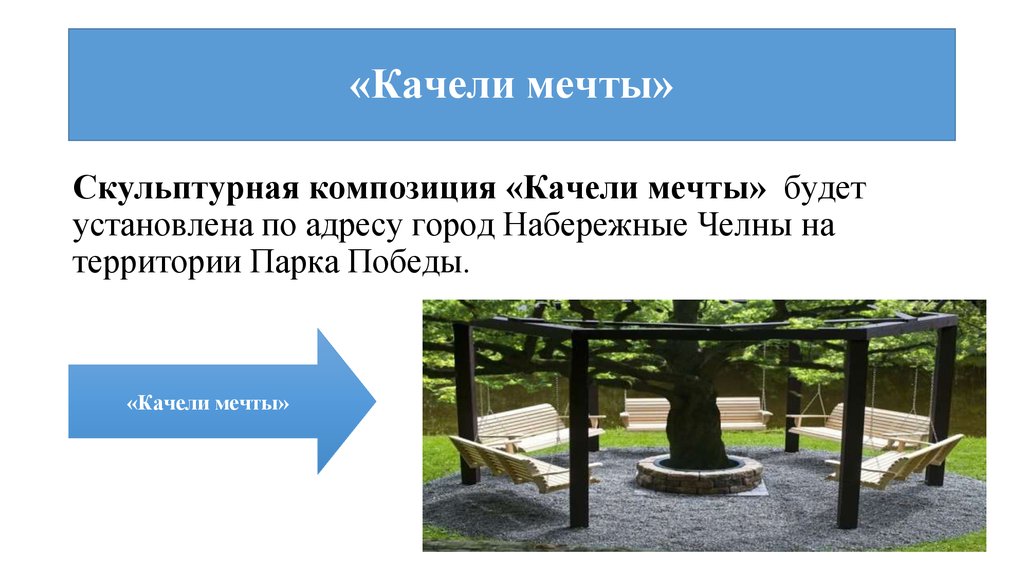 установленные в круг качели вокруг «Дерева желаний». Данный проект