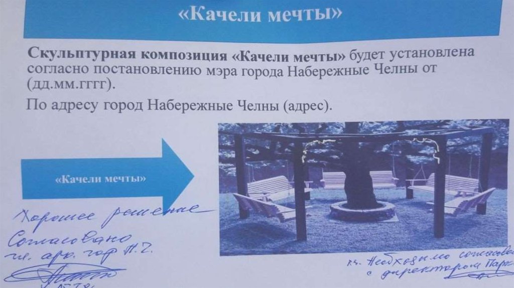 «Качели мечты»Скульптурная композиция «Качели мечты» будет