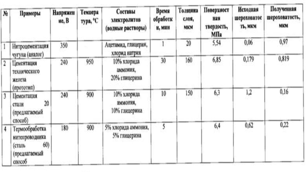 5. Пример 2. Обработка изделий по способу, изложенному в прототипе Обработка технического железа велась в охлаждаемом электролите