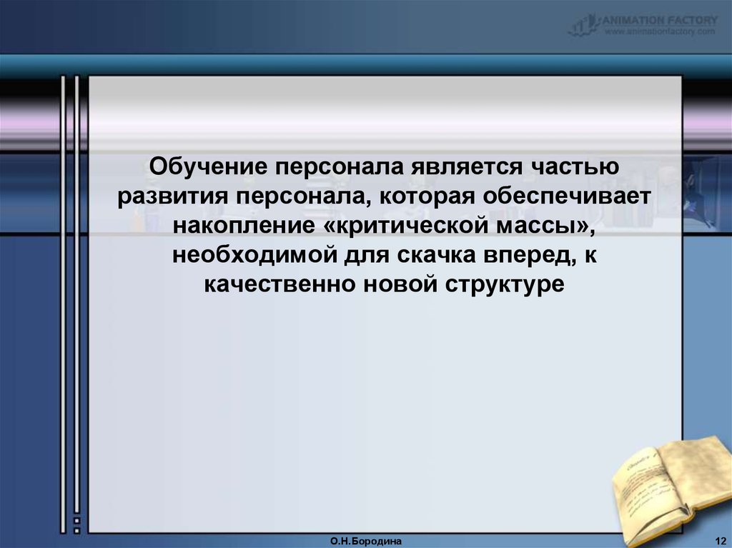 Обучение персонала является частьюразвития персонала, которая обеспечивает