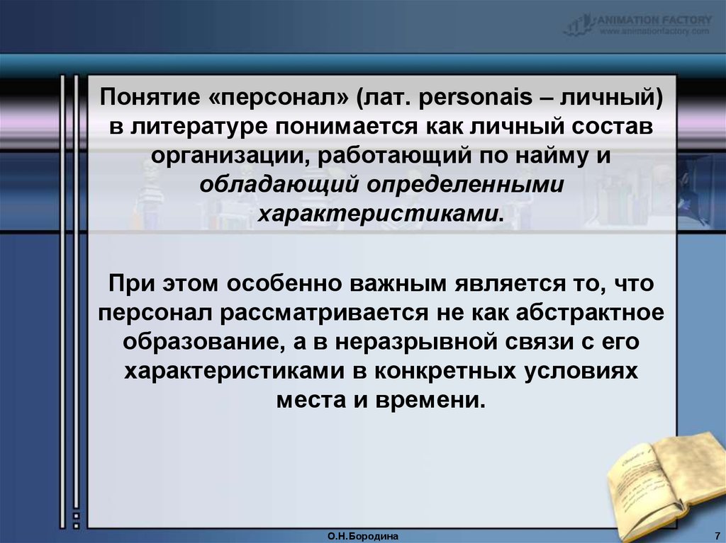 Понятие «персонал» (лат. personais – личный)в литературе понимается как личный состав