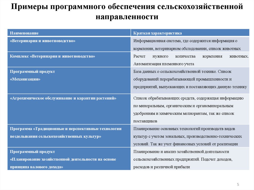 Примеры программного обеспечения сельскохозяйственнойнаправленности