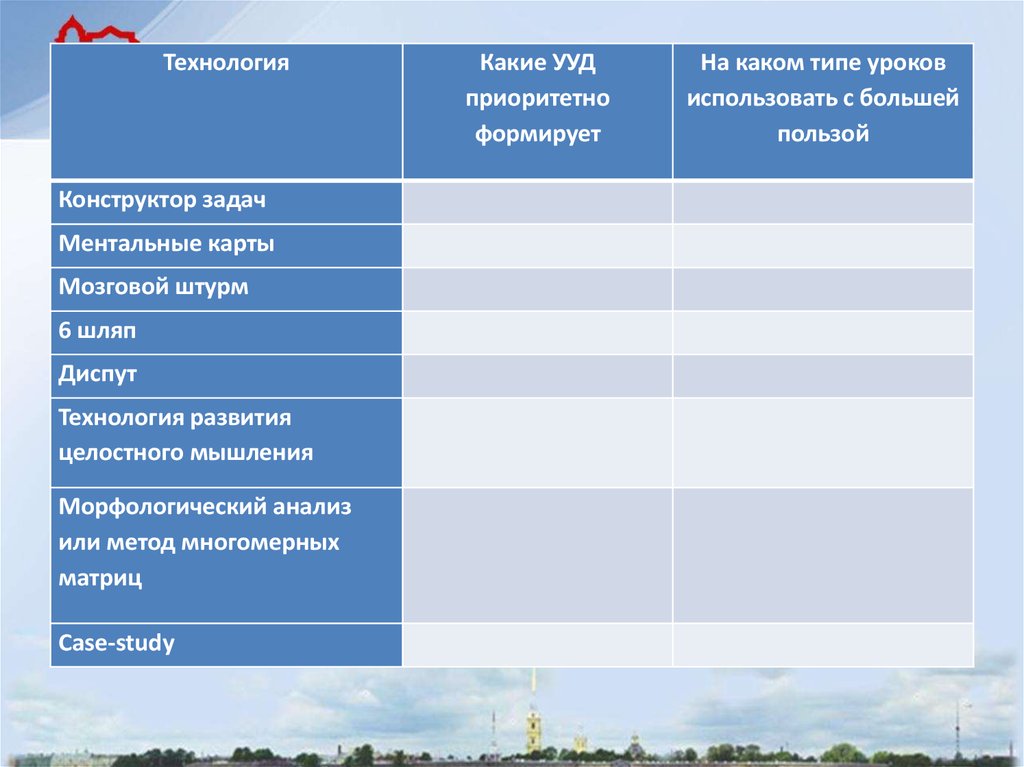 фантазию и записать в соответствующую ячейку таблицы свое видение