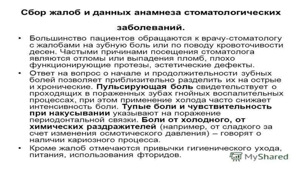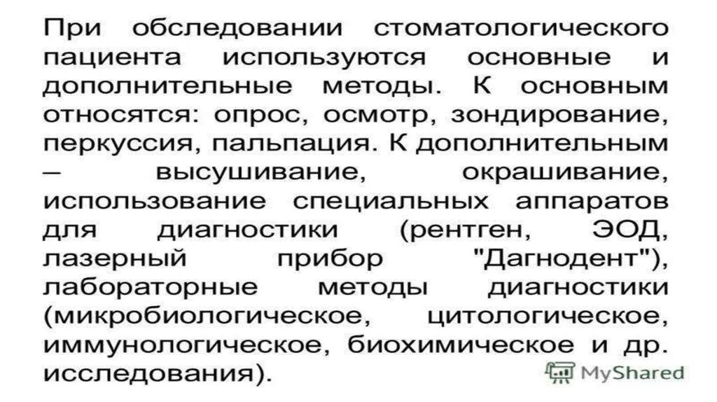 Основные и дополнительные методы обследования стоматологического больного