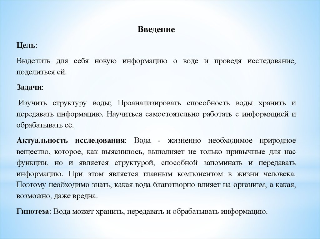 ВыводВ ходе проведения этого опыта я узнал, что вода имеет память и