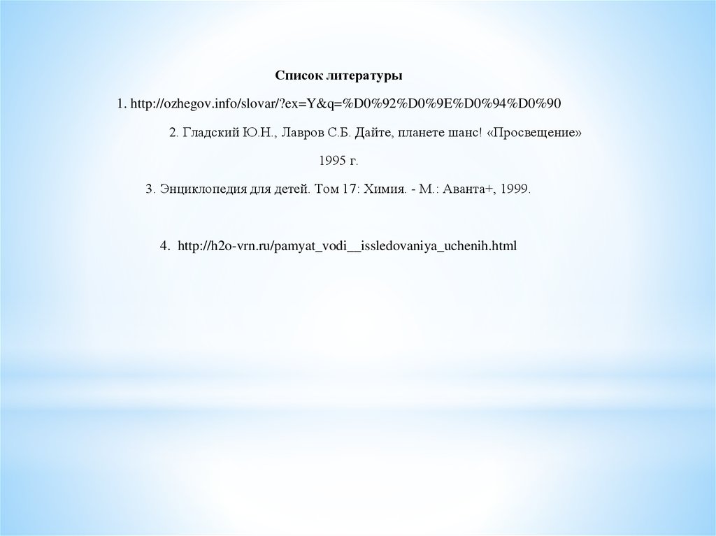 Список литературы1. http://ozhegov.info/slovar/?ex=Y&q=%D0%92%D0%9E%D0%94%D0%90