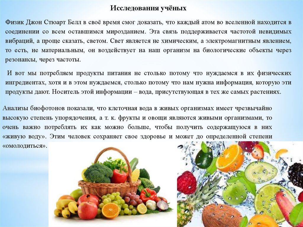 продукты дают. Носитель этой информации – вода, присутствующая в тех же самых растениях.