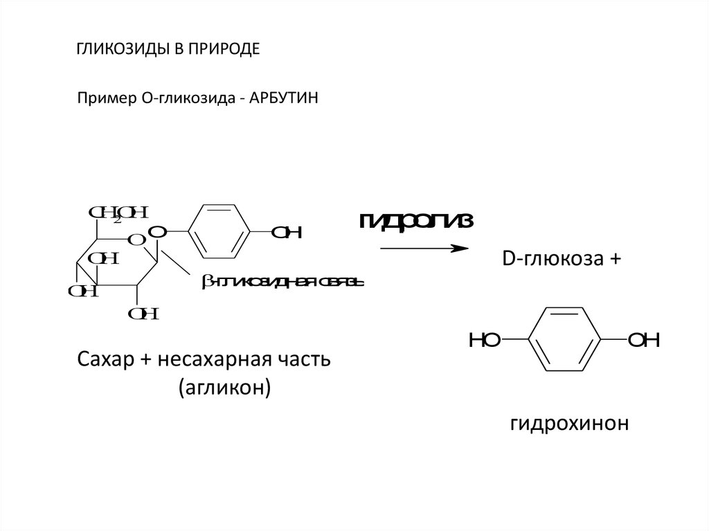 ГЛИКОЗИДЫ В ПРИРОДЕПример О-гликозида - АРБУТИН