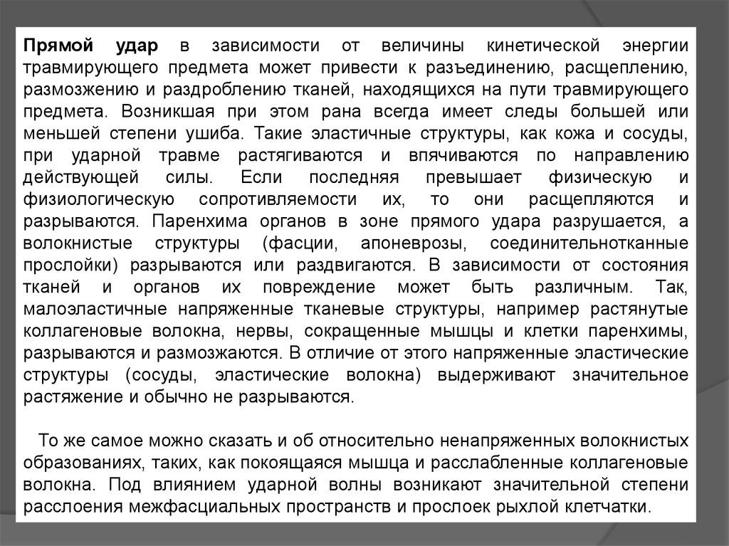 говоря, при ударной травме более плотные ткани приобретают большую