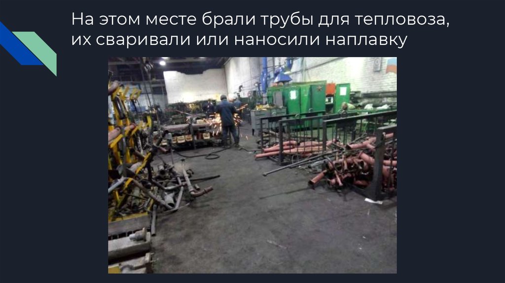 На этом месте брали трубы для тепловоза,их сваривали или наносили наплавку