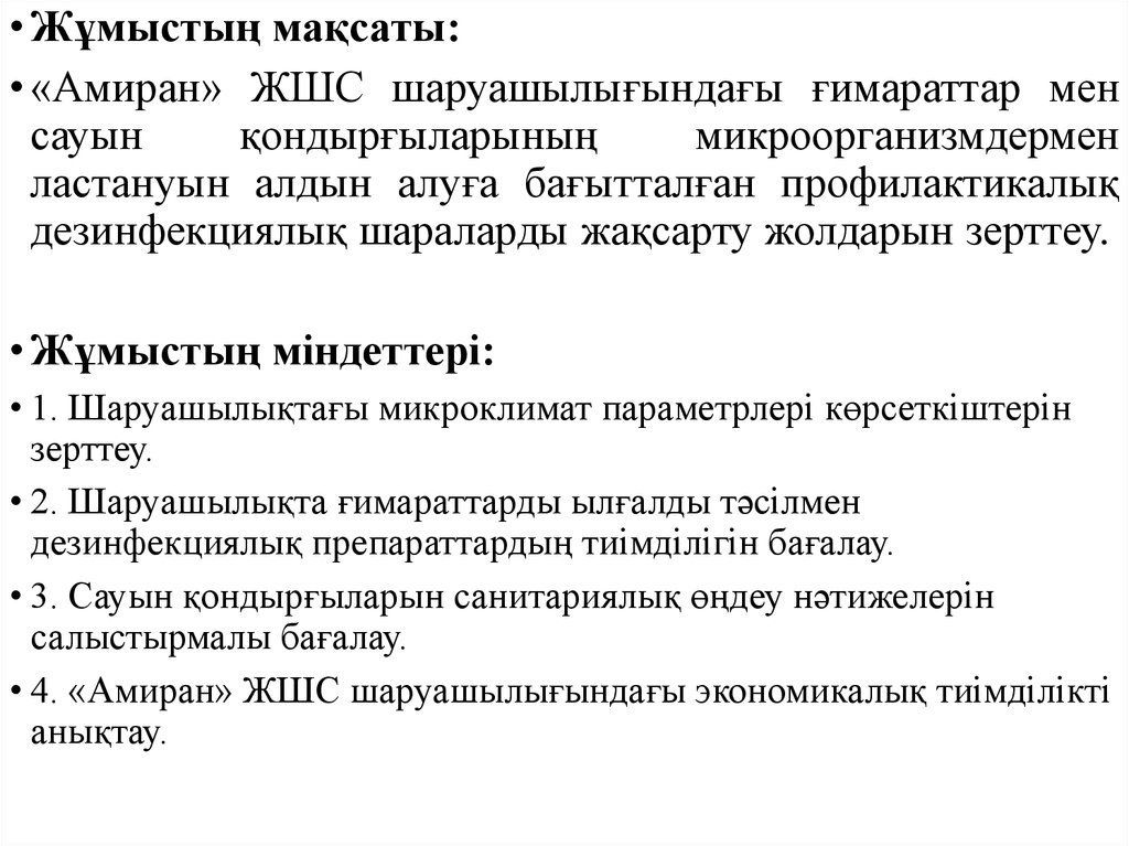 • Жұмыстың мақсаты:• «Амиран» ЖШС шаруашылығындағы ғимараттар мен