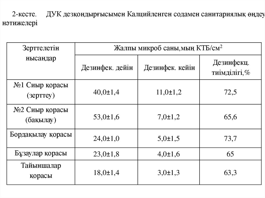 санитариялық өңдеу нәтижесінде, дезинфекция тиімділігі
