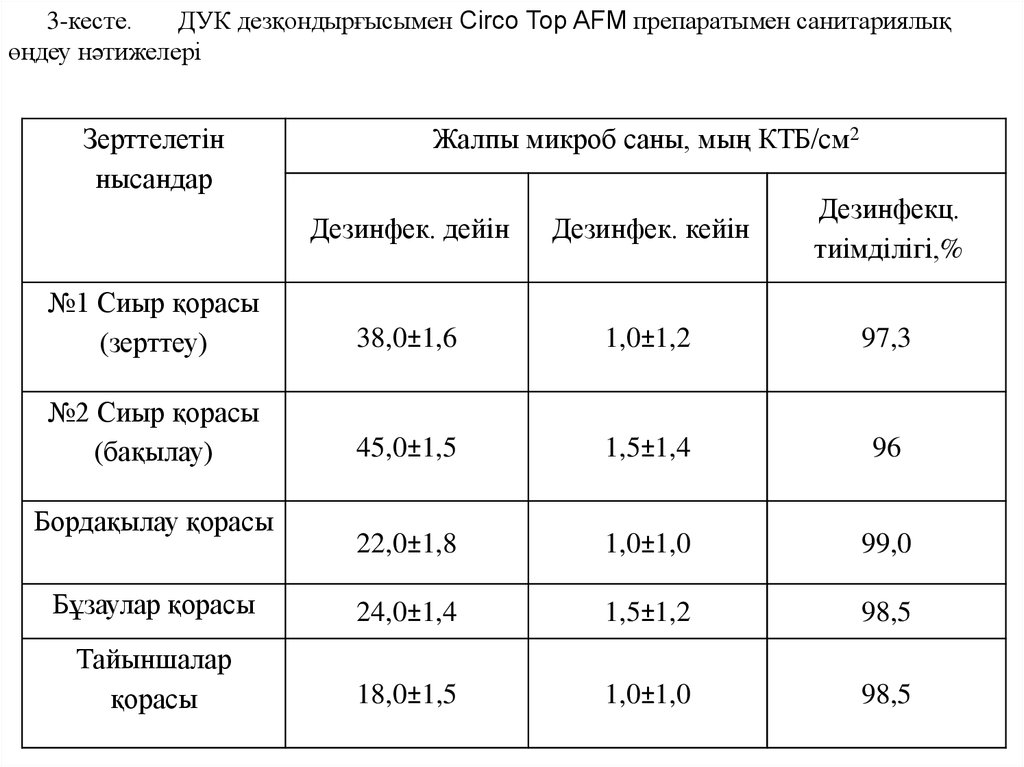 3-кесте.ДУК дезқондырғысымен Circo Top AFM препаратымен санитариялық