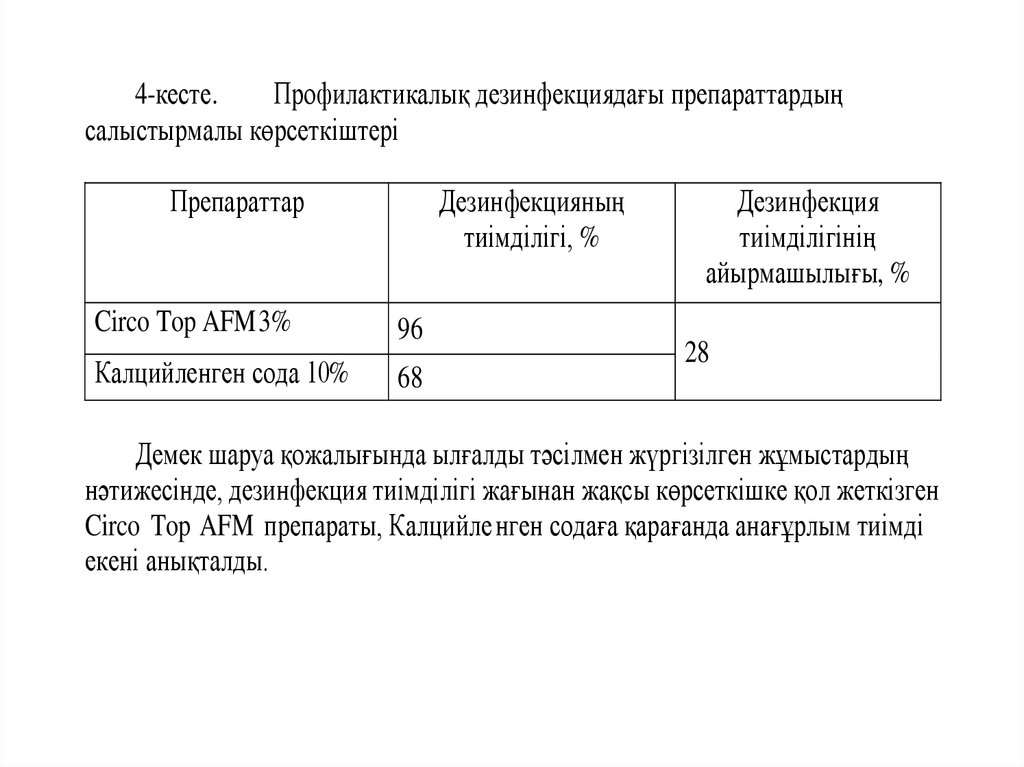 Кесте 6. Circo Top AFM препаратының бактерицидтік белсенділігініңсалыстырмалы көрсеткіштері