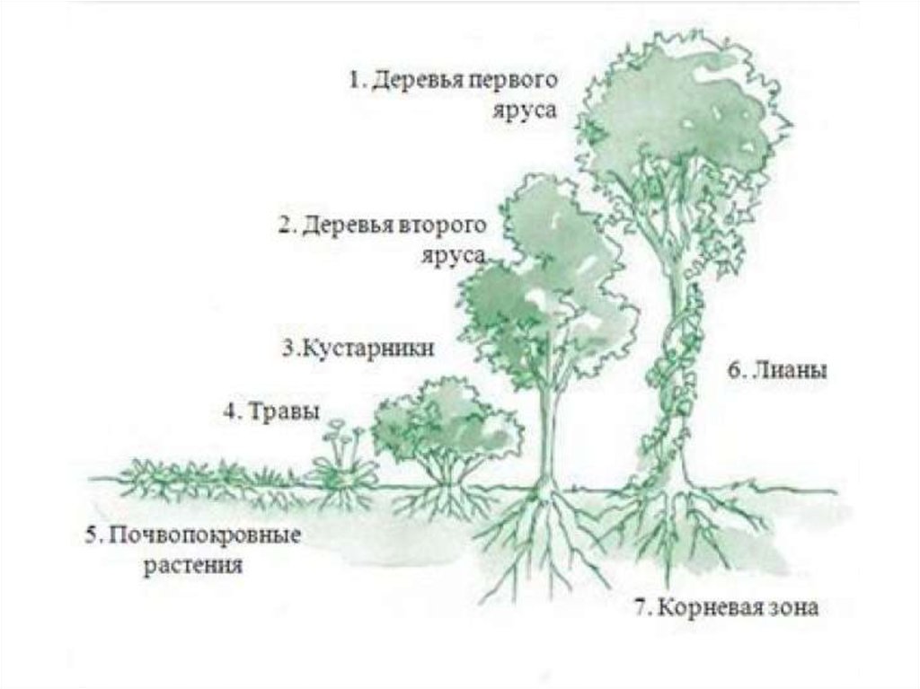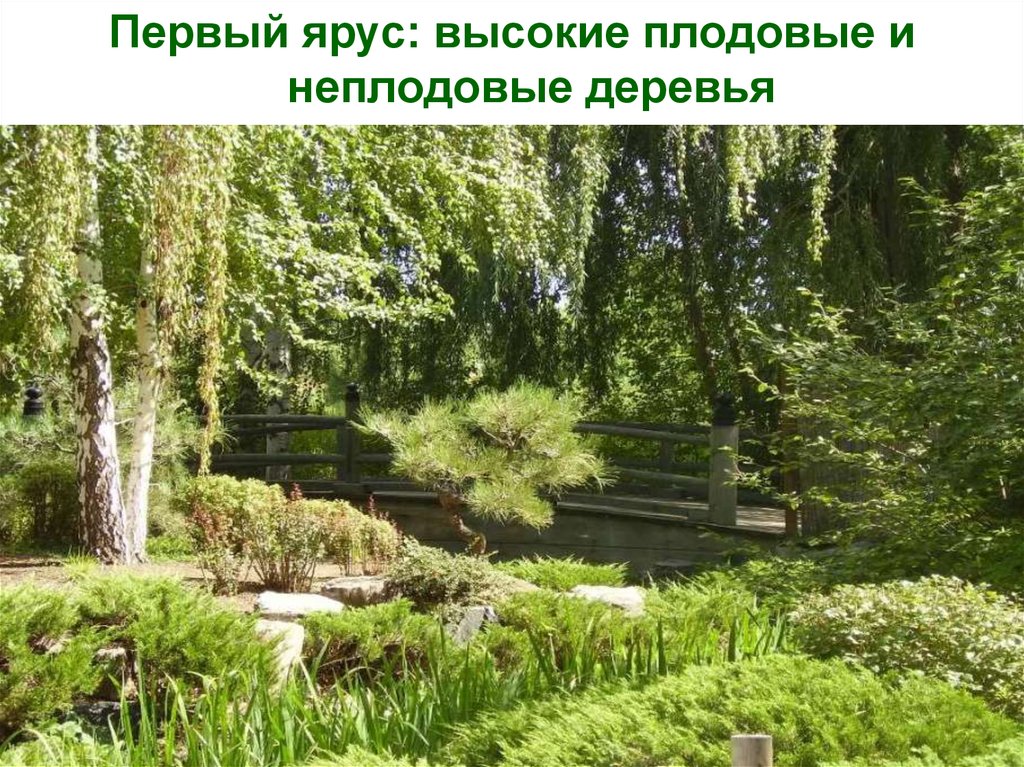 Первый ярус: высокие плодовые инеплодовые деревья
