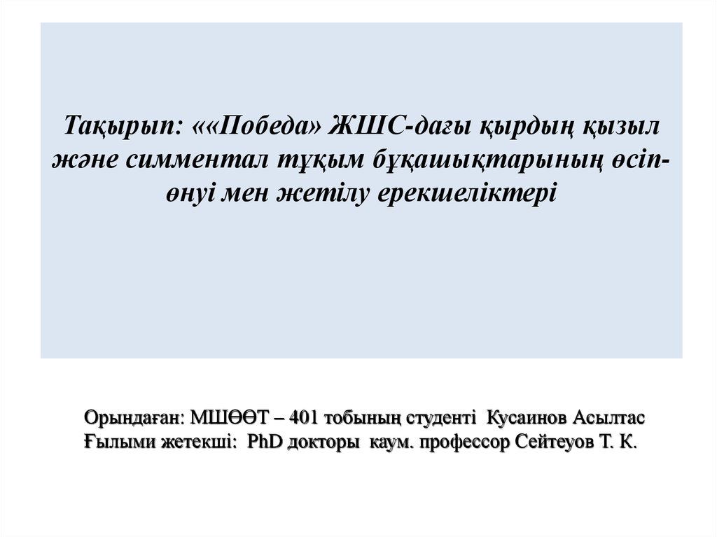 Тақырып: ««Победа» ЖШС-дағы қырдың қызылжәне симментал тұқым бұқашықтарының өсіпөнуі мен жетілу ерекшеліктері