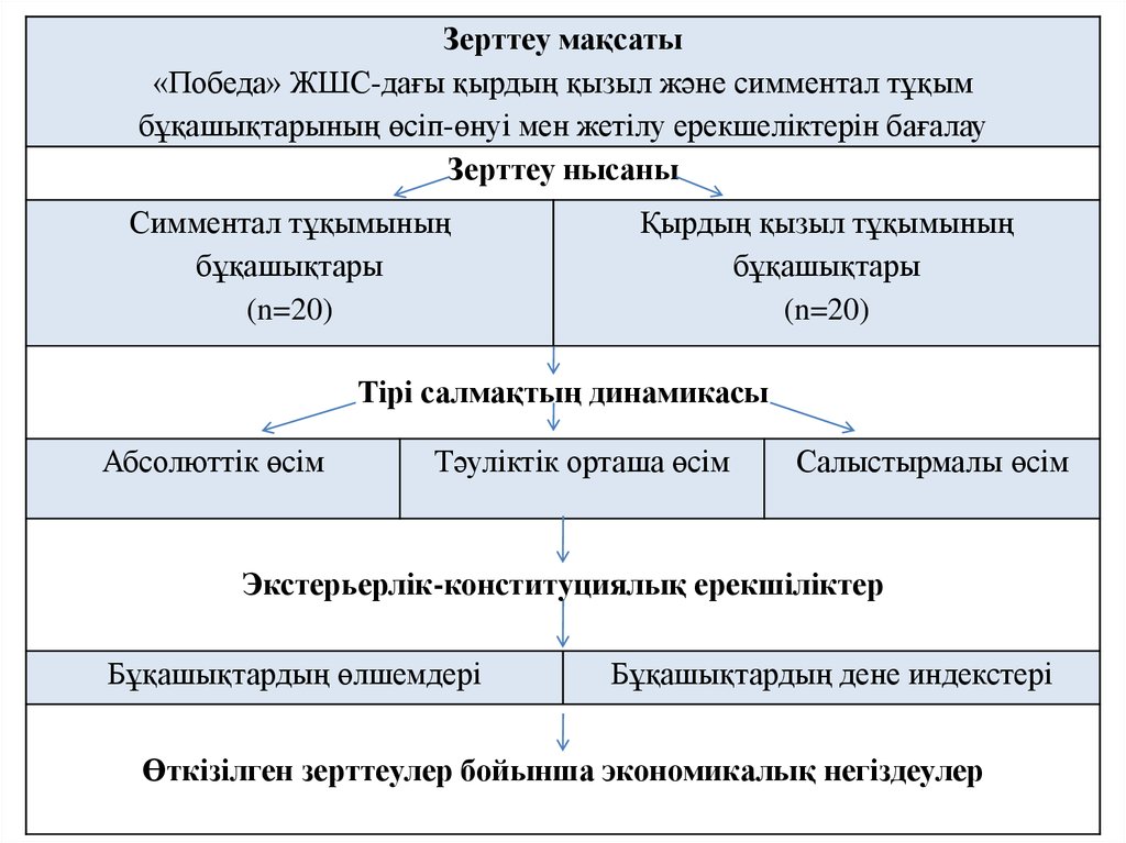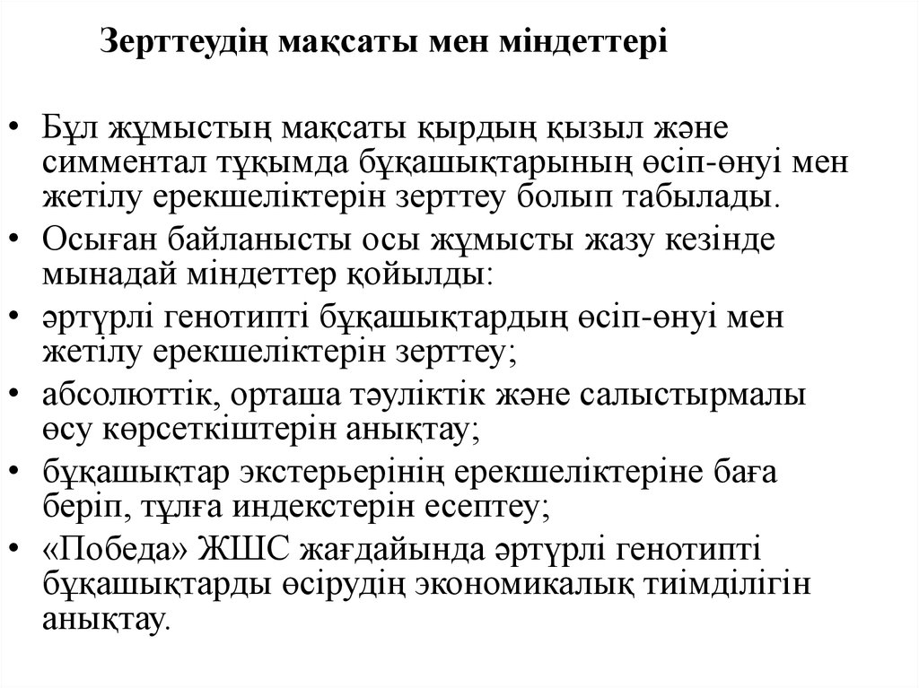 Зерттеу мақсаты«Победа» ЖШС-дағы қырдың қызыл және симментал тұқым