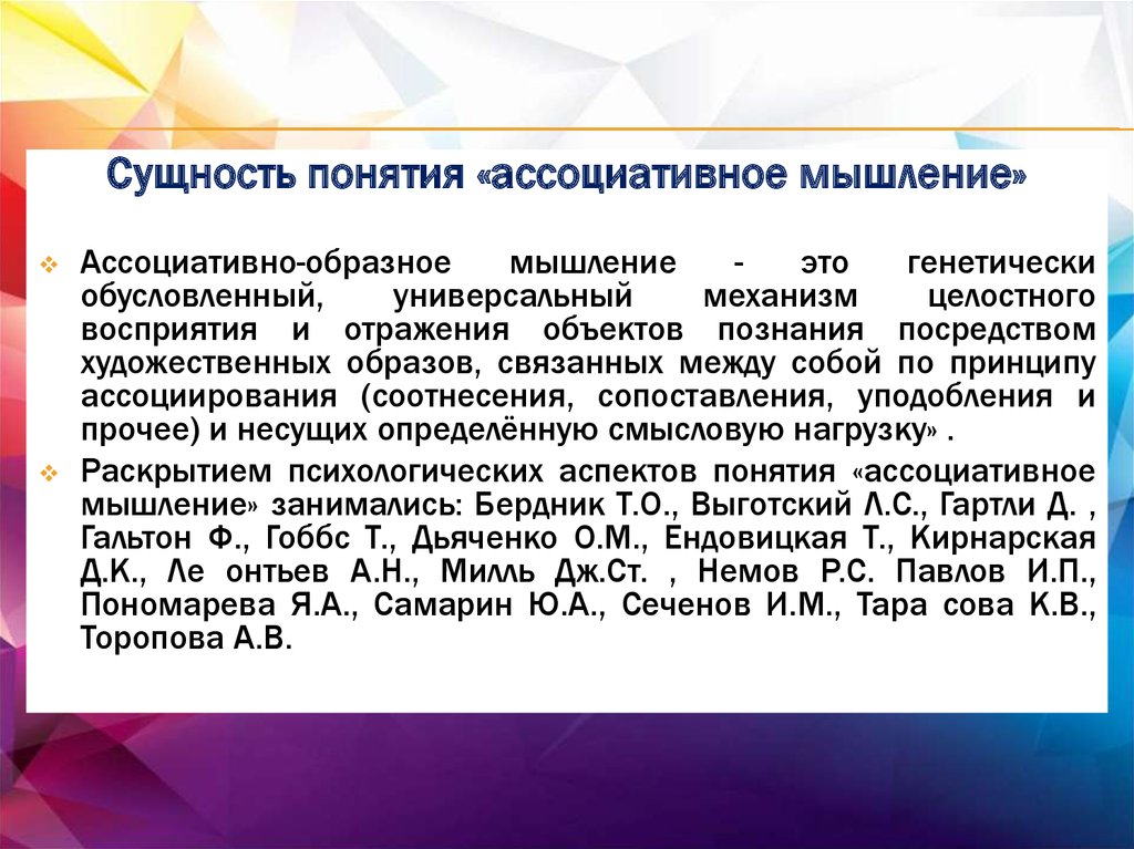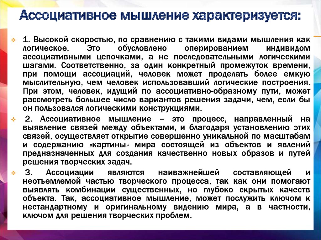 ассоциативного мышления.