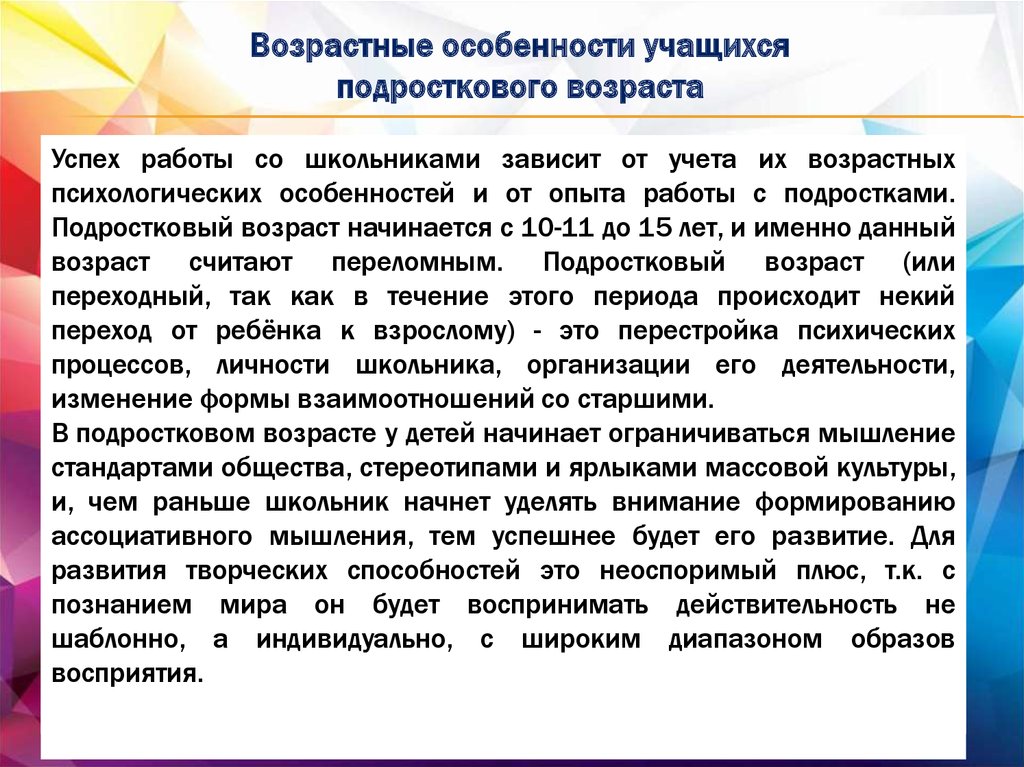 формирования ассоциативного мышления у подростков на занятиях