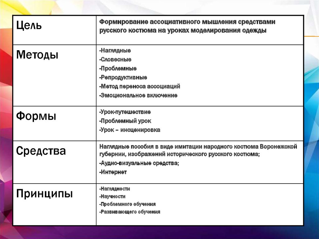 Формирование ассоциативного мышления у подростков средствами русского костюма на занятиях моделирования одежды