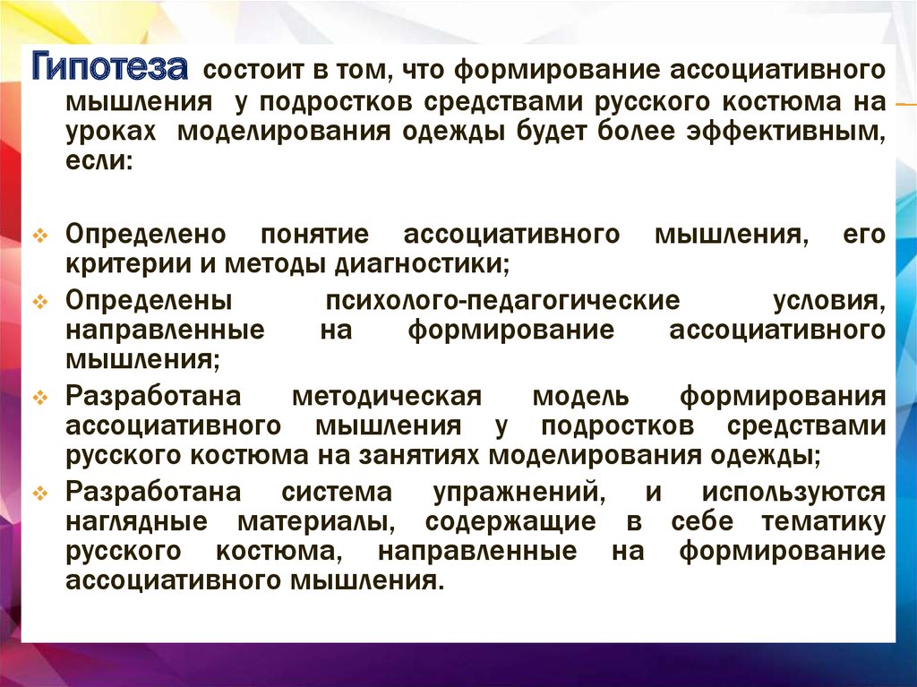 Гипотезасостоит в том, что формирование ассоциативного