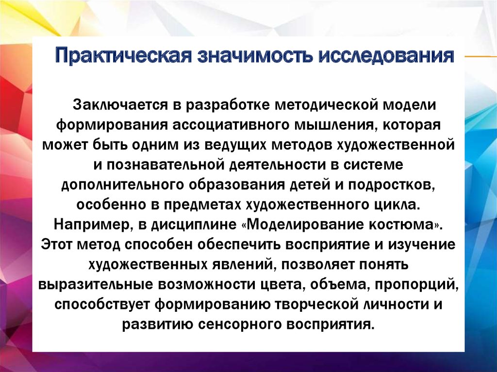 Практическая значимость исследованияЗаключается в разработке методической модели